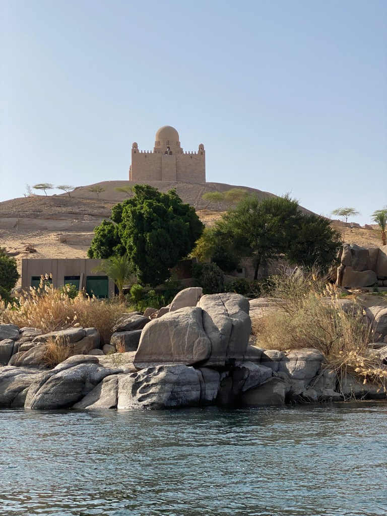 Nas margens do Rio Nilo existem construções como na foto abaixo, do túmulo de Aga Khan III, príncipe e sultão indiano que faleceu em 1957. O mausoléu foi construído pela sua esposa que também está enterrada neste local. Está fechado para o público desde 1997. O seu filho Ali Khan ficou famoso ao casar com a atriz americana Rita Hayworth.