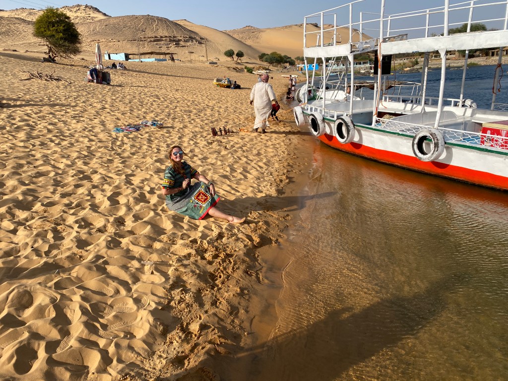 Na última parte do nosso Cruzeiro pelo Rio Nilo, viagem ao Egito em março de 2021, com a agência http://www.memphistours.com fomos conhecer uma “praia” às margens do Rio Nilo e a Vila Núbia localidade situada em Aswan.