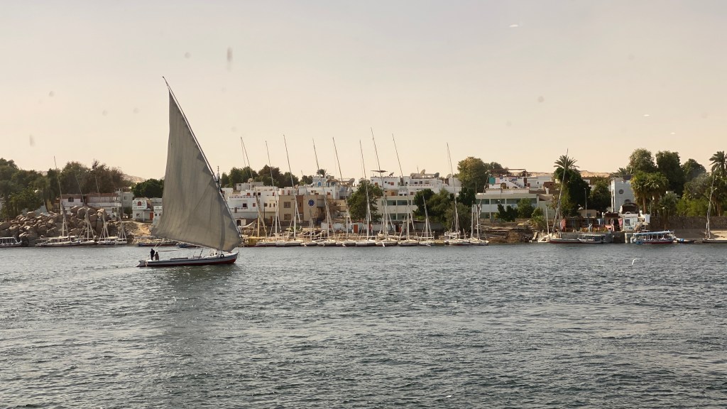 No mesmo pier pegamos um barco pequeno para fazer um passeio pelo Rio Nilo até chegar na Vila Nubia. Esse passeio também pode ser feito de feluca, os barcos à vela.